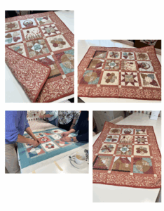 Yvonne heeft haar quiltje van de Basiscursus ‘Patchen met de Hand’ van Ineke Vaillant helemaal af! Is hij niet prachtig geworden? Ook haar kleurkeuze en