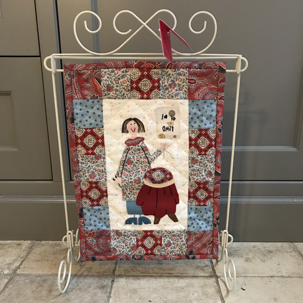 Anni Downs Hatched & Patched An Angels Story Quilt is een patroon met engeltjes die boodschappen doen, quilten, tuinieren, met een hartje vliegen en nog veel meer. Het bestaat uit veertien Stitchery blokken en bij elkaar is de quilt 165 x 170 cm, een prachtige niet al te grote maat. De afbeeldingen worden gefestonneerd. Het patroon is door Anni in hele zachte pasteltinten gemaakt, maar je kunt hem met andere kleuren helemaal in je eigen smaak maken. Kijk even naar de bijgevoegde foto’s!